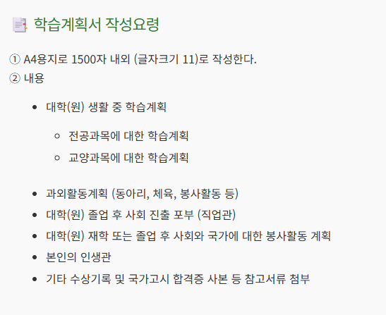 | 2 | 학습계획서 준비 | 1500자 이내, 구체적이고 사실 기반 |