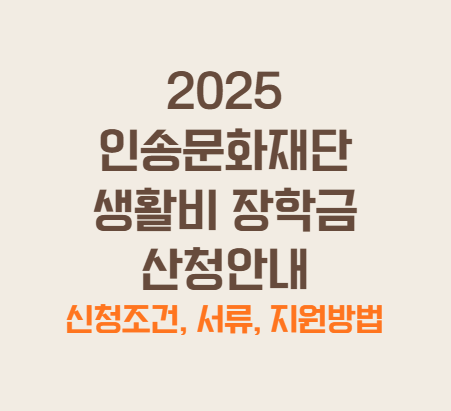 인송문화재단 생활비 장학금은 2025년에도 대학생들의 실질적 생활 지원을 위해 운영됩니다. 지원 조건, 제출 서류, 장학금 내용까지 전반적인 정보를 빠짐없이 정리했습니다.