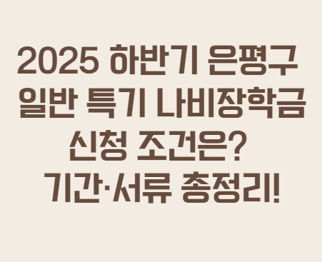 2025 하반기 은평구 일반 특기 나비장학금 신청 조건, 대상, 제출서류, 소득 및 성적 기준 등 상세한 정보를 한눈에 확인해보세요! 장학금 유형별 차이와 신청 기간까지 꼼꼼하게 안내합니다.
