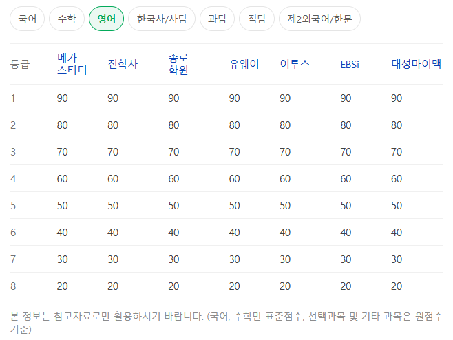 | 1단계 | 등급컷 기준표 확보 | 2026 수능 등급컷 최신 자료 활용 |