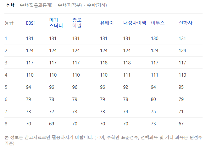 | 수학 (확률과 통계) | 93점 | 91~92점 |
