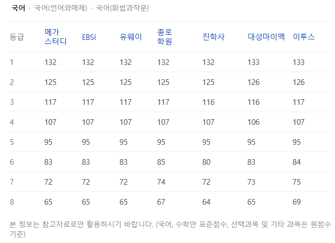 | 국어 (화법과 작문) | 93~95점 | 89~91점 |