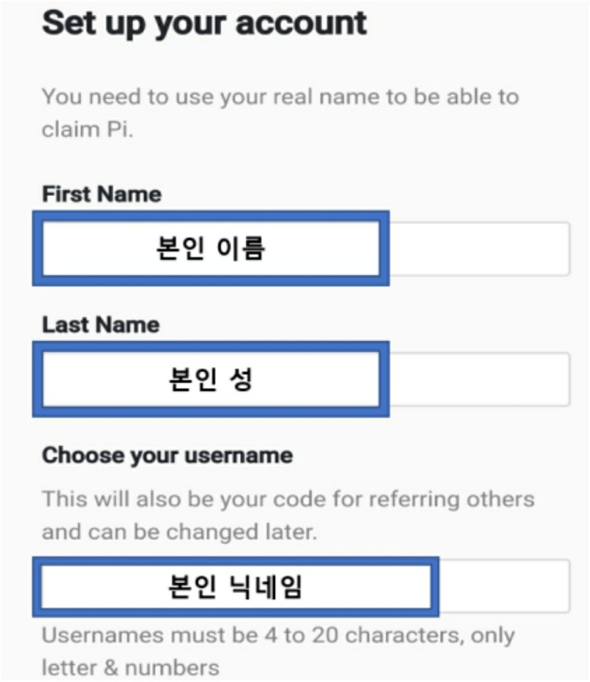 파이코인 이름을 적을 시 꼭 여권상의 이름과 성을 기입 하셔야 합니다!