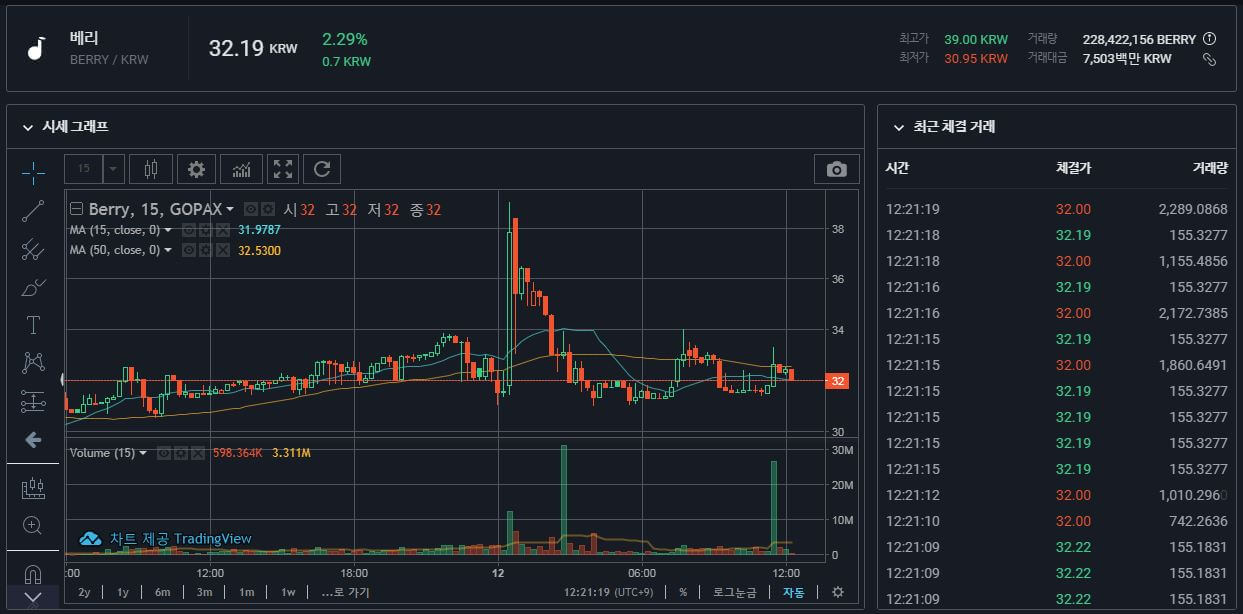 현재 고팍스에 상장된 베리코인은 2021년 4월 12일 12시 20분 가격은 32.19원입니다. 3월에는 5원이었던 베리 코인이 엄청 성장하였습니다. 우리는 이런 코인은 가상화폐 거래소에서 현금을 주고 얻는 것이 아니라, 무료로 얻을 수 있습니다.