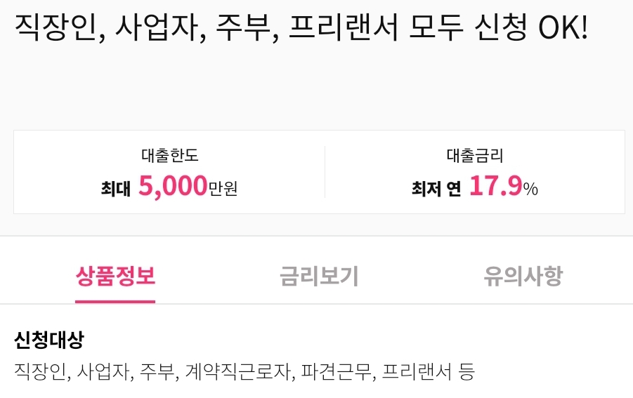 | 대출한도 | 10만원 ~ 5,000만원 |