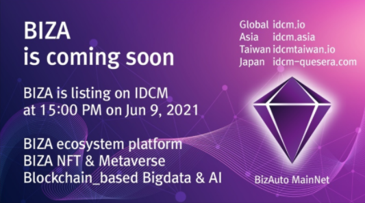 - IDCM 가상화폐 거래소는 2021년 6월 9일 오후 15시 비자코인 상장