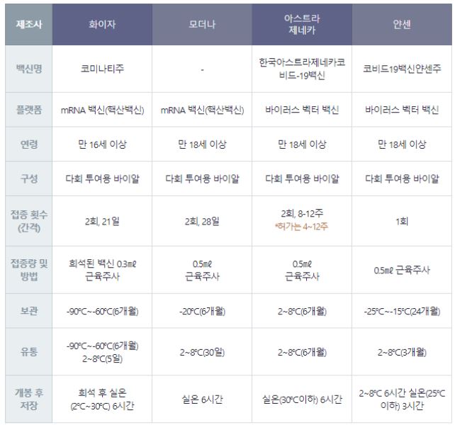코로나 백신 종류