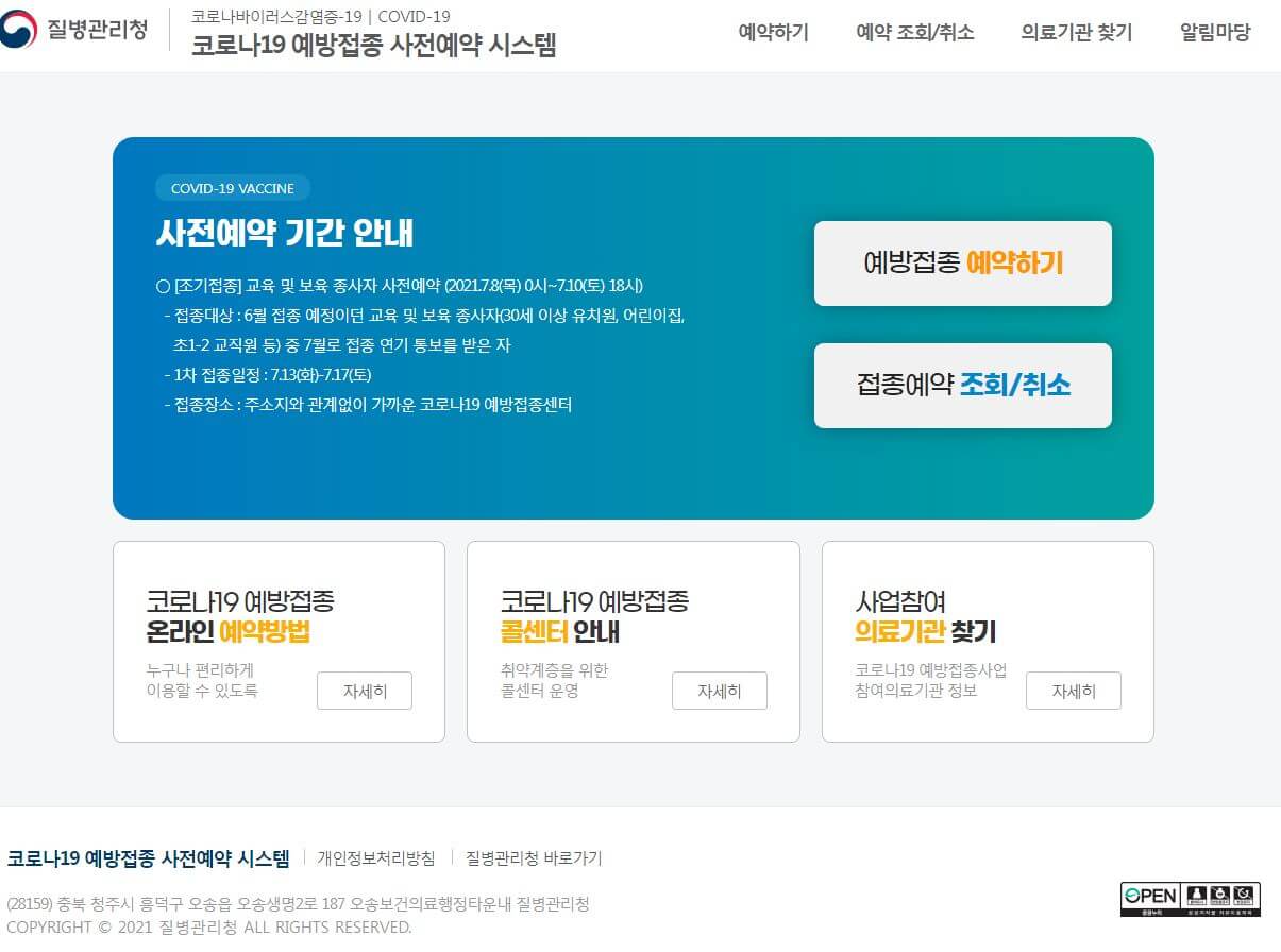 - 7월 19일부터 ~ 7월 24일 코로나 예방접종 예약 가능