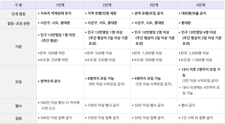 - 4명까지 모임 가능(5인 이상 사적모임 금지)