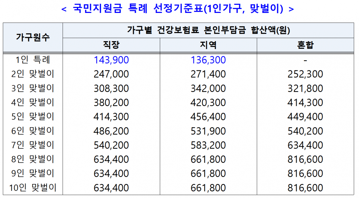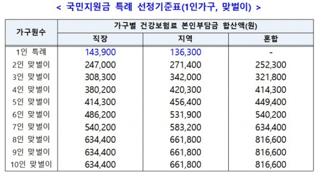 직장가입자 외벌이 가구 / 지역가입자 지급 기준