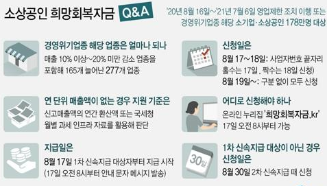 소상공인 희망회복자금 5차 재난지원금 1차 8월 17일부터 신청접수