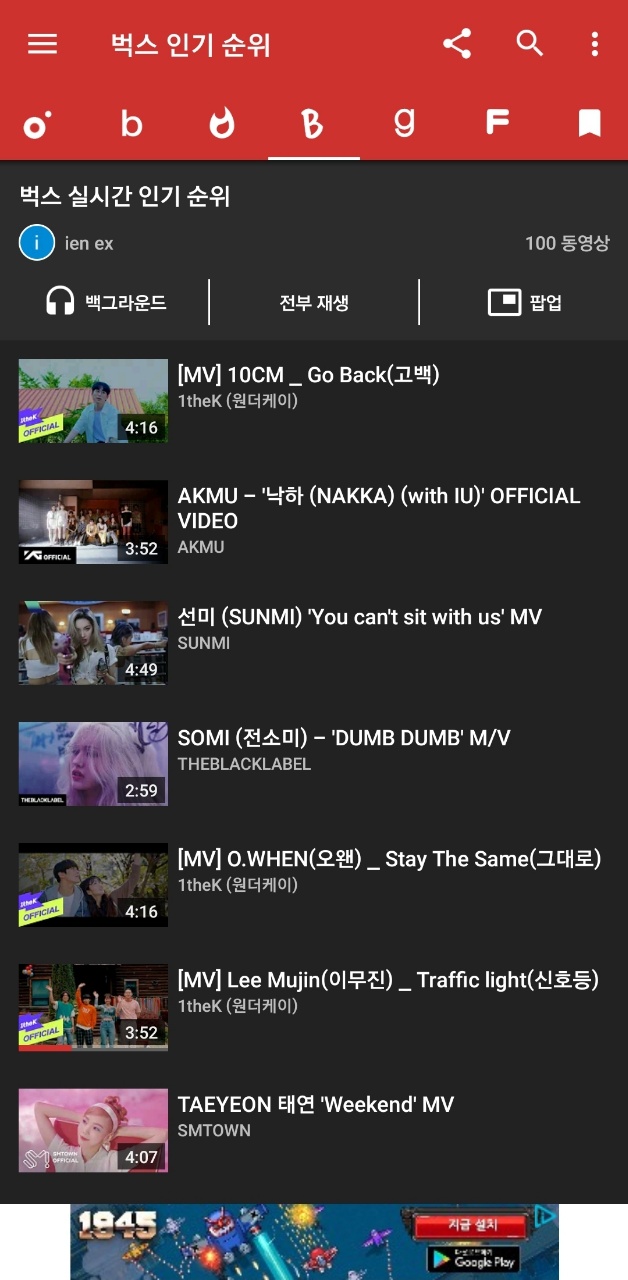 - 음악만 듣고 싶은 분들은 "백그라운드" 클릭