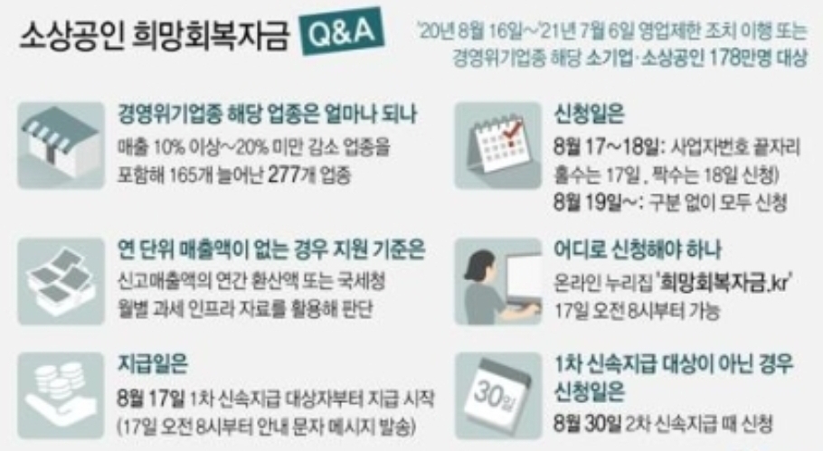 [5차 재난지원금] 소상공인 희망회복자금 대상, 신청, 지급시기, 방법