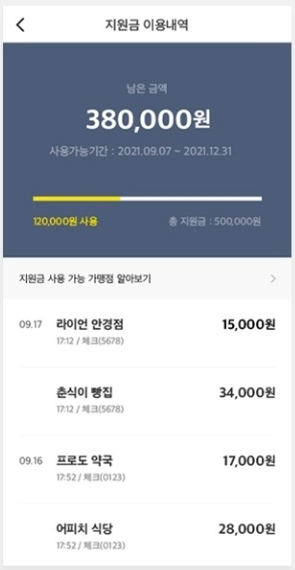국민지원금은 신청일 이후 1일에서 2일 이내에 재난지원금 지급이 되며, 지급 완료 시 휴대폰 문자메세지로 안내문자가 발송됩니다. 그리고 지급이 완료되면 카카오뱅크 체크카드로 재난지원금을 사용할 수 잇으며, 지원금 이용 내역 메뉴에서 남은 재난지원금도 확인이 가능하니 편하게 사용을 하실 수 있습니다.