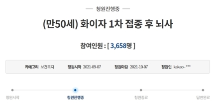 남편 A씨는"급성 뇌출혈로 피가 많이 고여 있어서 응급 뇌수슬을 진행해야 살 수 있다고 하여 3시간 넘는 수술을 하고 중환자실로 갔지만, 아내는 의식을 회복하지 못하고 사경을 헤매고 있다"고 덧붙였습니다. 또 다른 이는 모더나 백신을 맞은 58세 어머니가 급성 심근경색 진단을 받고 치료 중이라는 가족의 청도 같이 이어지고 있다고 밝혔습니다.
