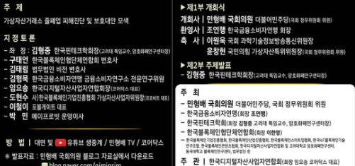 암호화폐 거래소 줄폐업 피해진단과 투자자 보호 대안 포럼은 9월 9일 오전 10시 30분 서울 강남구 스페이스쉐어 삼성 코엑스센터 갤럭시A홀에서 개최되며, 행사는 민형배 의원 유튜브 채널(민형배TV), 코어닥스 유튜브 채널(코어닥스TV)을 통하여 생중계로도 방송할 예정이라고 밝혔습니다.