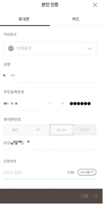 - 본인인증 절차 진행