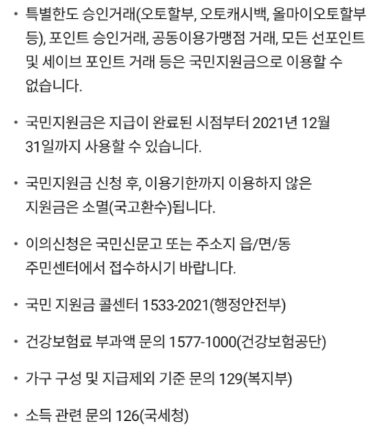 5차 재난지원금은 코로나-19 장기화에 따른 피해 지원, 지역경제 활성화 목적으로 지급되며 전통시장, 학원, 식당, 병원, 약국, 미용실 등 별도 사용처가 정해져 있으며, 국민지원금 사용은 올해 1