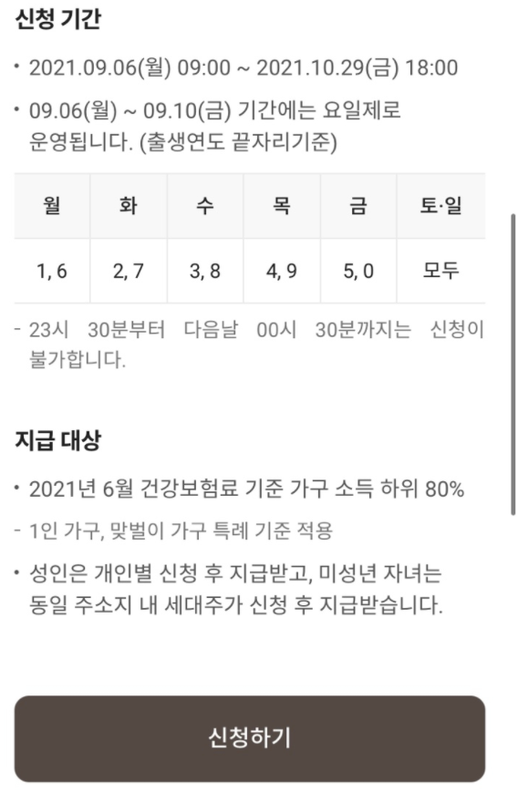 5차 재난지원금 신청 대상 지급시기 조회