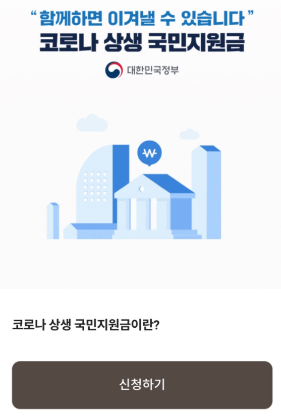 신청기간 확인 후 코로나 상생 국민지원금 신청하기를 클릭 해주시면 됩니다.