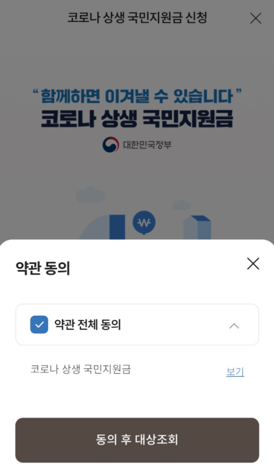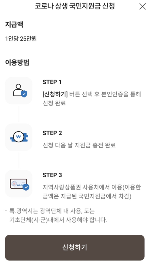 - 코로나 상생 국민지원금 신청하기 클릭