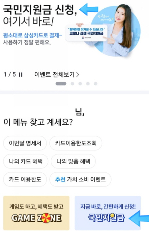 삼성카드 재난지원금 어플 신청