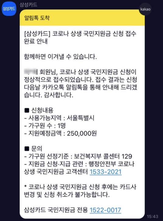 삼성카드 재난지원금 신청