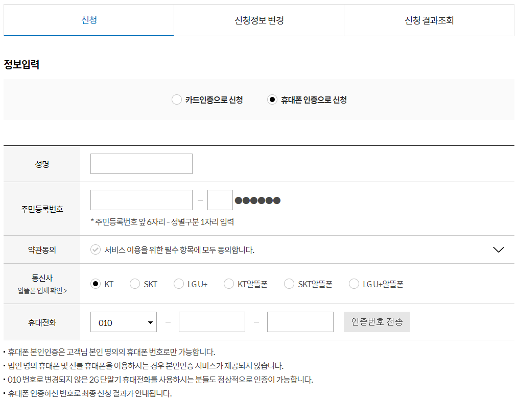 우리은행 재난지원금 신청을 하기에 앞서 "카드인증" 그리고 "휴대폰 인증"을 받아야 하는데 카드인증 같은 경우에는 우리은행 카드번호를 전부 기입해야하는 번거로움과, 카드를 가지고 있지 않는 경우가 있으니 저는 휴대폰 인증으로 대처 하였습니다. 휴대폰 인증도 아주 간단하게 1분정도면 처리가 가능하거든요