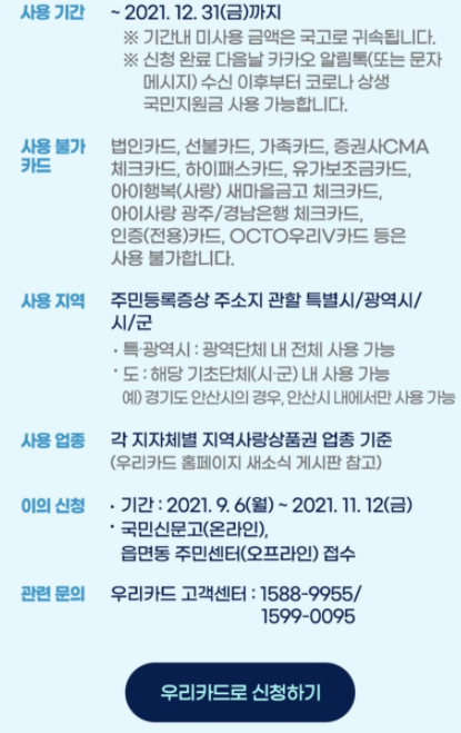 우리은행 재난지원금 사용기간