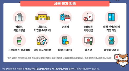 5차 재난지원금은 코로나-19 장기화에 따른 피해 지원, 지역경제 활성화 목적으로 지급되며 전통시장, 학원, 식당, 병원, 약국, 미용실 등 별도 사용처가 정해져 있으며, 국민지원금 사용은 올해 1