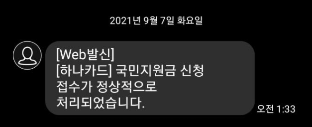 하나은행 재난지원금 신청이 모두 끝이 낫으며, 재난지원금 신청이 잘 되었는지 확인이 필요하니, 신청결과 조회를 통하여 하나은행 재난지원금 신청 확인을 할 수 있으며, 하루나 이틀정도 지나면 위 사진처럼 문자로 알려줍니다.