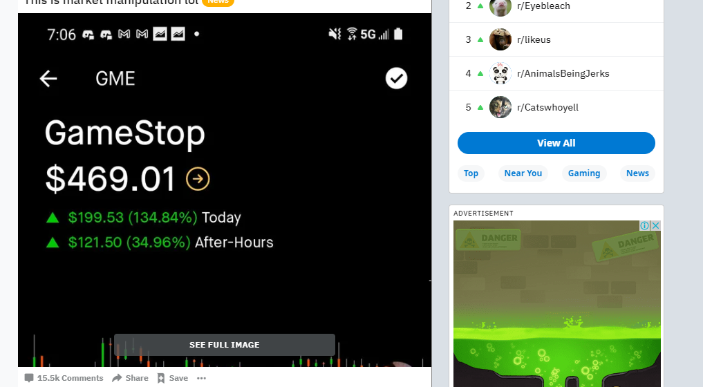 해지펀드가 긴급 구제금융을 받는 등 하였습니다. 게임스탑 주가는 정말 하늘을 뚫을기세로