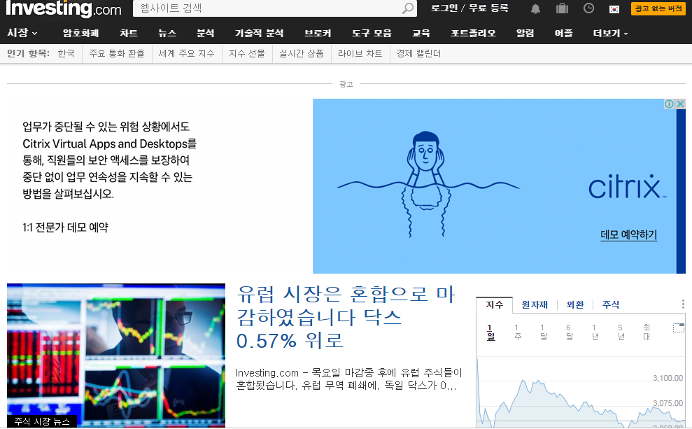 인베시팅닷컴 웹 사이트주소는(https://kr.investing.com/)입니다.