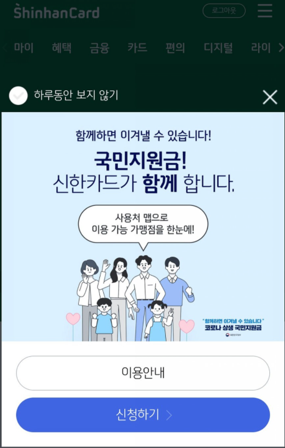 - 신한카드 재난지원금 신청 사이트 : shinhancard.com