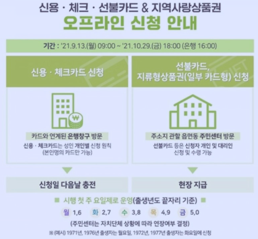 9월 6일부터 9월 10일까지 온라인으로 신한카드 재난지원금 신청을 받았으나, 9월 11일부터는 출생년도 상관없이 언제든지 온라인으로 신한카드 재난지원금 신청을 하실 수 있습니다. 그리고 9월 13일부터는 오프라인으로 신청이 가능한데 출생년도 요일제를 시행하니, 참고 하시길 바랍니다.