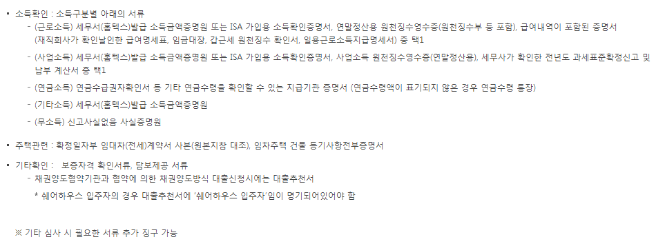 청년 전세자금대출 준비서류