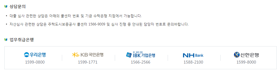 - 기금 수탁은행 : 우리은행, 국민은행. 신한은행, 기업은행, 농협