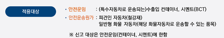 운임유형으로는 화주가 운수업체 또는 화물차주에게 지급하는 "안전운송운임"과 운수업체가 화물차주에게 지급하는 "안전위탁운임"으로 두 종류가 있습니다.