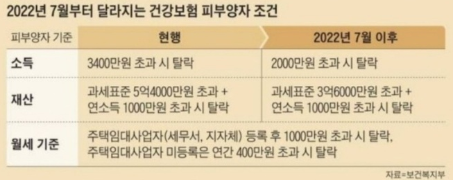 2022년 7월부터 달라지는 건강보험 피부양자 조건