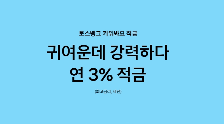 - 토스뱅크 키워봐요 적금은 짧은 기간동안 도전하는 미션형 적금입니다. 매주 저금을 연속으로 성공하면 연 3% 이자를 받을 수 있으며 잔액이 부족하거나 다른 이유로 한번이라도 자동이체에 실패하면 기본금리(연1%)만 받으니 통장에 잔액을 항상 신경쓰시고 채워두시길 바랍니다.