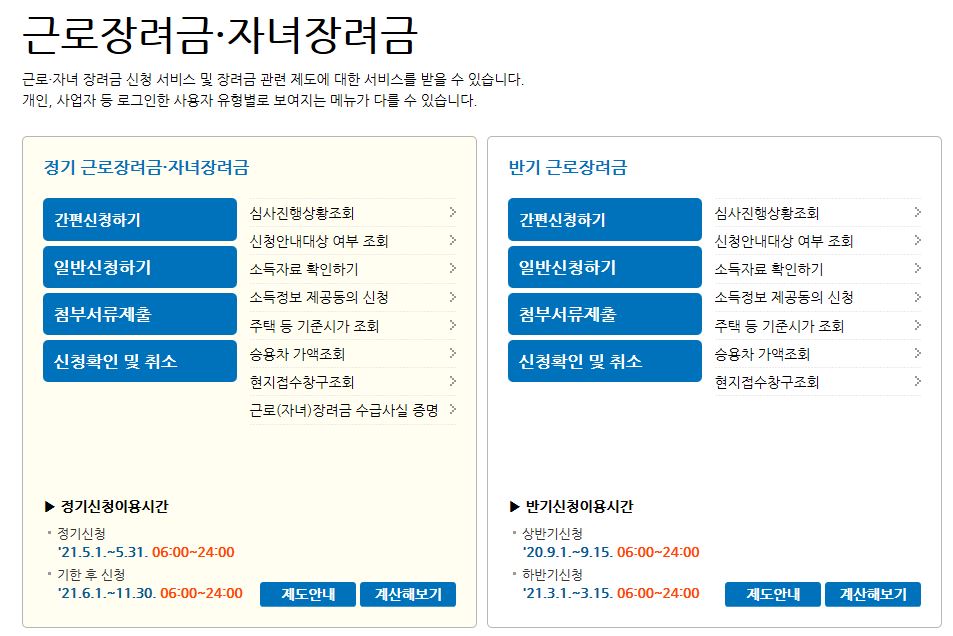 ● 근로장려금 반기신청