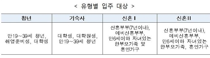 '청년매입임대주택'은 만 19세~39세의 청년 등을 대상으로 공급하는 주택으로, 임대조건은 인근 시세의 40~50% 수준이며 특히 청년매입임대주택은 학업·취업 등의 사유로 이주가 잦은 청년층의 수요를 반영해 냉장고, 세탁기, 에어컨 등 가전제품을 갖춘 상태로 공급됩니다.