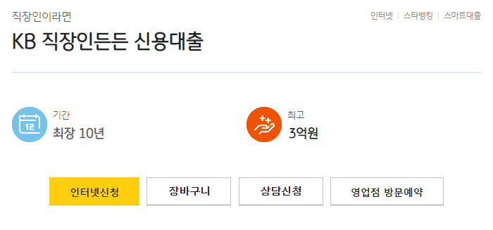 KB국민은행 직장인 신용대출 인터넷신청