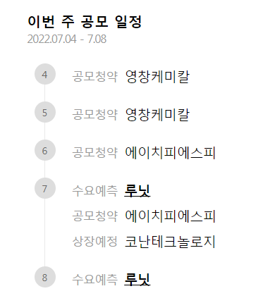 그리고 한눈에 확인할 수 있는 비상중 주식 공모현황을 보면은 이번 주 공모일정, 상장 추진현황 등 관심있는 비상장 주식 거래 종목의 진행상황을 간편하게 신속하게 확인을 할 수 있는 장점이 있습니다.