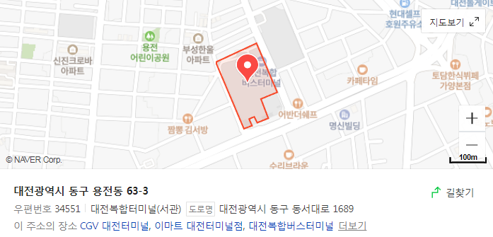 - 대전 동구 용전동 63-3번지 복합터미널서관 1층 59호