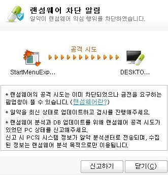 즉, 위 메세지 처럼 알약 공개용 백신에서 계속 랜섬웨어 차단 알림이 뜨면 윈도우 조작이 불능하게 만들어버려서 아무것도 못하게 됩니다.