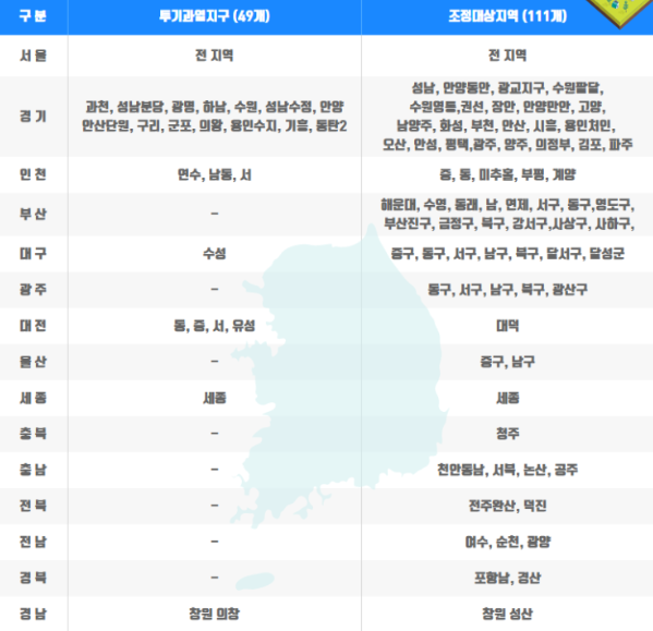 주택담보대출 체크리스트 및 규제지역 지정 현황