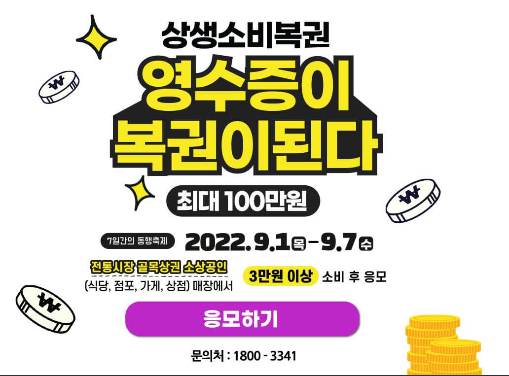 응모는 전 국민 누구나 응모를 할 수 있으며 응모기간은 9월 1일부터 9월7일 동안 소비한 영수증만 응모가 가능합니다.