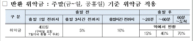 승차권 위약금·잔여석