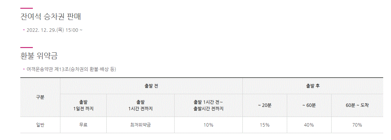 승차권 위약금·잔여석